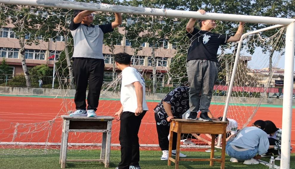 在国庆假期来临之际,为丰富学生课外活动,方便学生进行体育锻炼,我院作为2021年昌黎校区秋季运动会协办单位,积极筹划,踊跃参与。在收到昌黎校区体育学院要求我院学生会文体部更换操场足球网的通知后,由于部分学生临时调课,人手短缺,遇到一定困难,我院党委非常重视,立即安排党员组建党员志愿先锋小队,经过一个多小时的共同努力,顺利完成了更换足球网的任务。