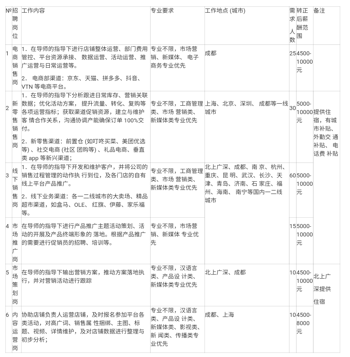 招聘岗位: