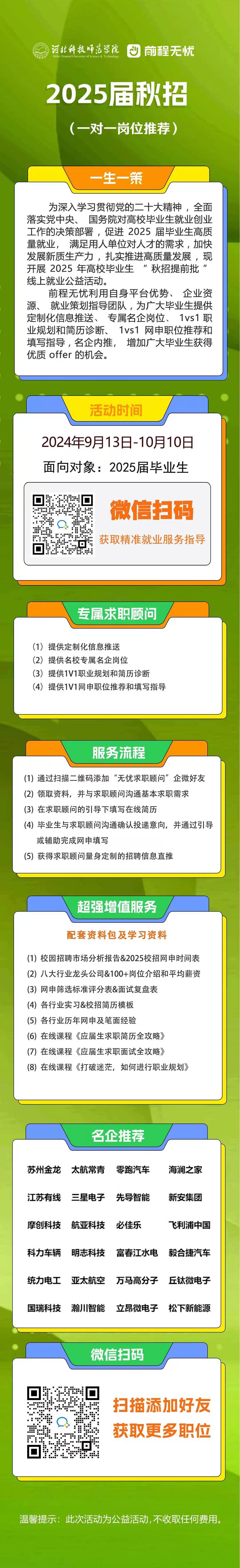为深入学习贯彻党的二十大精神,全面落实党中央、国务院对高校毕业生就业创业工作的决策部署,促进2025届毕业生高质量就业,我校现开展2025年高校毕业生“秋招提前批”线上就业公益活动。