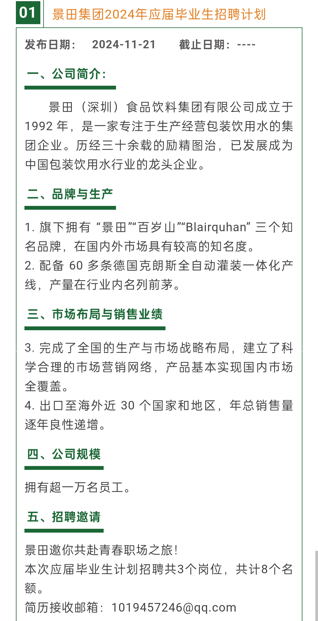 景田集团2024年应届毕业生招聘计划