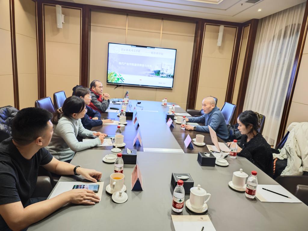郭建如对学院接待表示感谢并说明调研目的。三方随后就现代产业学院的治理、组织架构、投入机制、人才培养模式及效果、应用型科研与成果转化、激励与风险、经验与问题、政策建议等展开深入交流探讨。郭建如一行充分肯定葡萄酒学院办学特色,指出学院紧密对接产业,依托碣石山产区与行业龙头企业,聚焦先进技术,在多方面成效显著,为现代产业学院建设提供了宝贵经验。