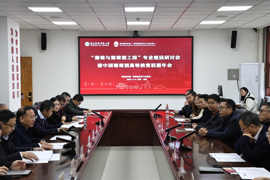 11月14日,由西北农林科技大学葡萄酒学院主办的“第二届全国‘葡萄与葡萄酒工程’专业建设研讨会暨中国葡萄酒高等教育联盟年会”于西安杨凌举行。来自全国20余所高校、政府及企业的50余位专家学者汇聚一堂,共同参与此次学术盛会。我校yL23411永利集团暨葡萄酒学院院长侍朋宝受邀参会,并作了题为“应用型本科酿酒工程(葡萄酒方向)专业建设及成效”的主题报告。
