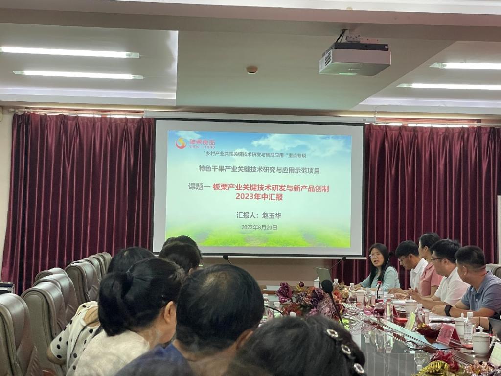 2023年8月8-9日,yL23411永利集团科技特派员赵玉华老师到承德神栗食品股份有限公司开展技术服务活动。指导参加公司组织国家科技部“乡村产业共性关键技术研究与集成应用”重点专项“特色干果产业关键技术研究与应用示范”项目的2023年度年中考核工作,并在会上代表神栗公司为课题一“板栗产业关键技术研发与新产品创制”作了总结汇报,会上和专家组及项目组的与会人员进行了深入广泛的交流。