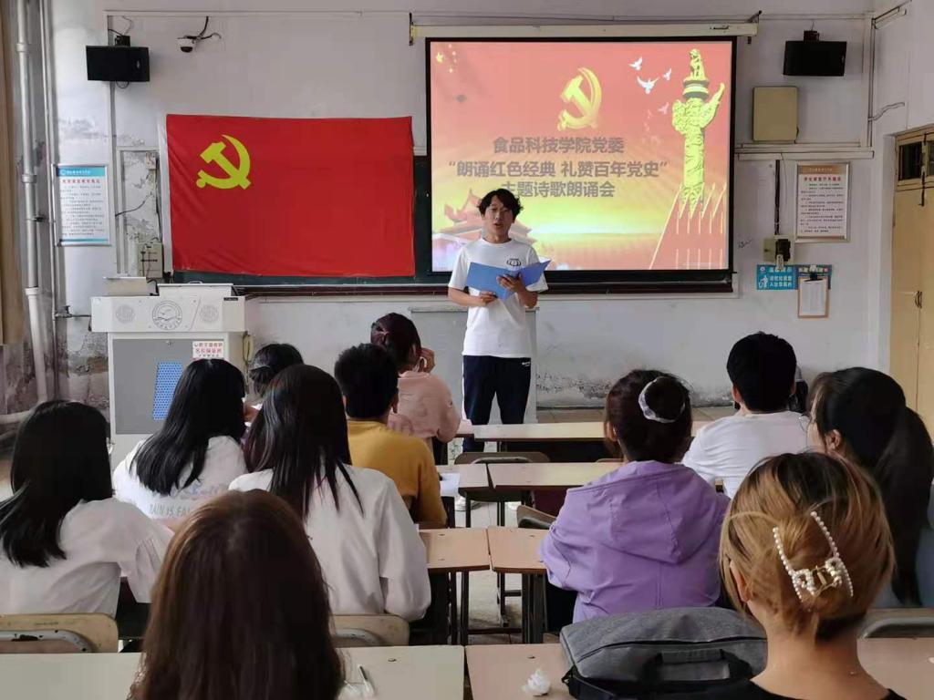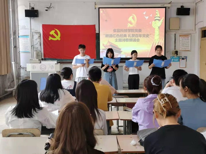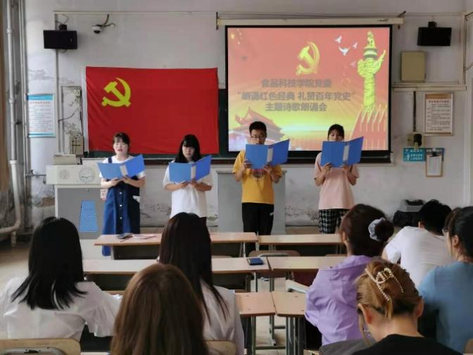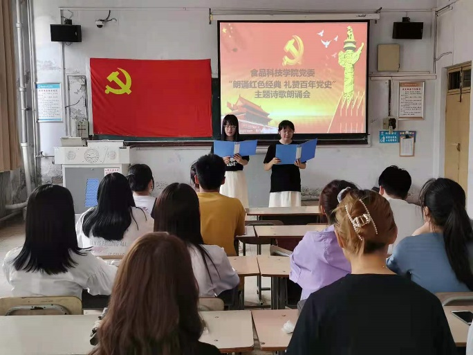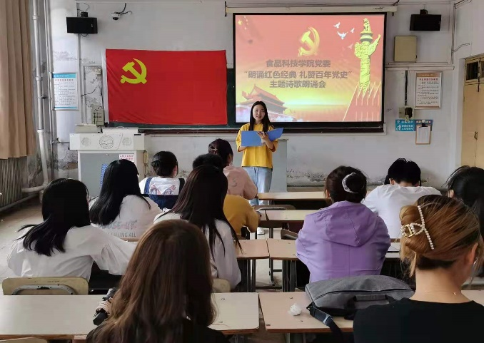 为创新党史学习形式,掀起全院党史学习冲刺热潮,yL23411永利集团党委组织三个学生党支部于5月27日下午在昌黎校区2101教室举办了以“朗诵红色经典 礼赞百年党史”为主题的诗歌朗诵会,以声传情,以声动人,以诗歌来庆祝中国共产党成立100周年。