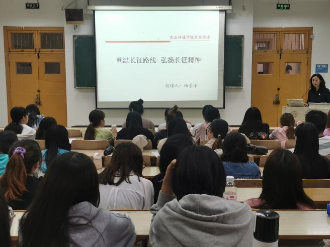 杨崇泽从长征的背景和概况、参加的部队、重要的战役、长征的意义和长征精神的启示等方面进行了讲授。她强调,长征精神是我们党的优良传统和宝贵财富,虽然过去85年了,但是长征不朽的精神和光辉永远照耀着我们,是建设社会主义现代化和构建社会主义和谐社会的重要精神力量,是保持与人民群众紧密联系的重要法宝。她要求全体同学要有坚定的共产主义理想信念、坚强的革命意志和信心,要深入学习老一辈无产阶级革命家艰苦奋斗和密切联系群众的优良传统和作风。