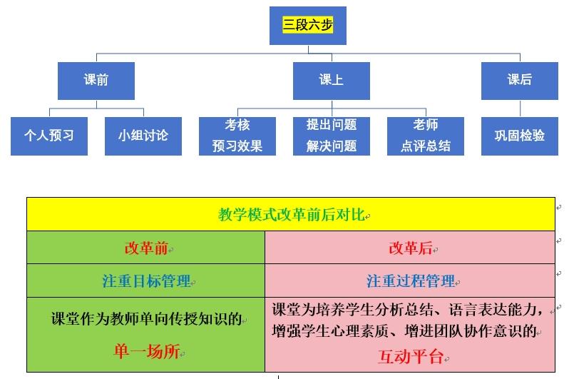 教学方式上积极开展信息化手段的应用。采用“三段六步”线上线下混合教学模式,即把教学活动分解为课前、课上、课后三个阶段,课前布置预习任务,要求学生个人预习后小组讨论;课上先通过提问或手机答题考核预习或复习效果,然后提出问题、解决问题,最后老师深入讲解、补充、总结;课后巩固检验和辅导。
